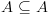 אמ"מ כל איבר ב-A הוא גם איבר ב-B, סימון לתת קבוצה: נאמר כי A מוכלת ב-B, וכי A היא קבוצה חלקית ל-B. תכונות של הכלה